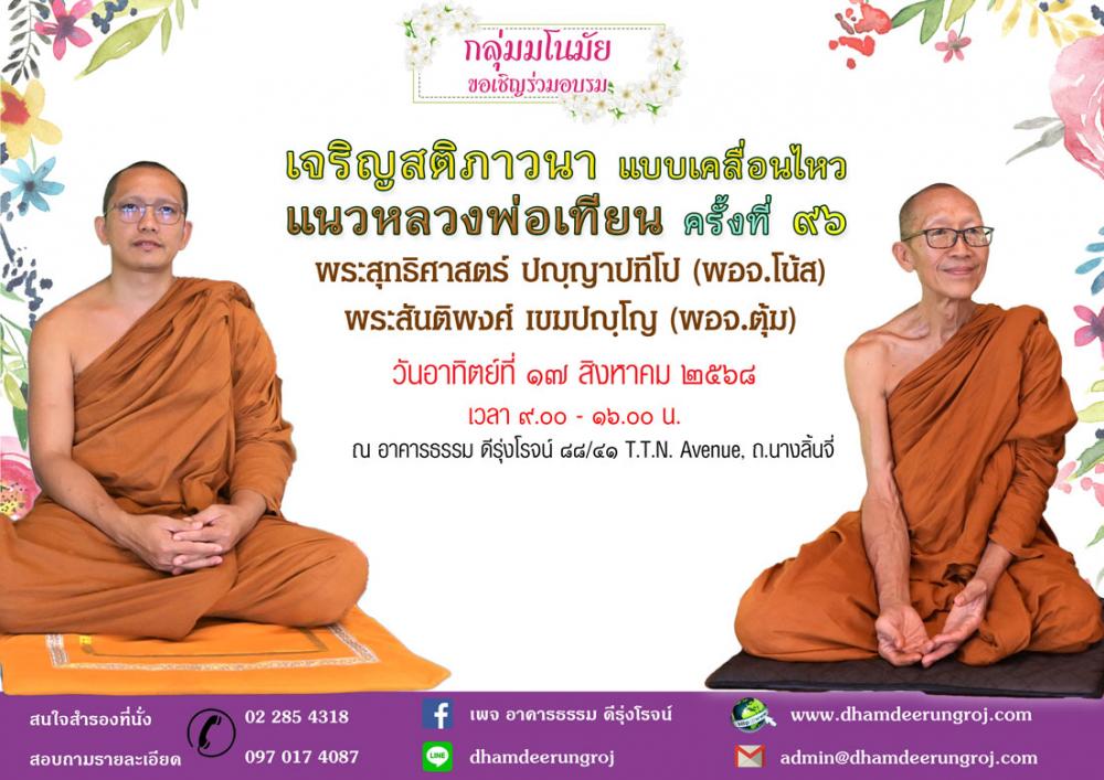 เจริญสติภาวนาแบบเคลื่อนไหว แนวหลวงพ่อเทียน ครั้งที่ 96